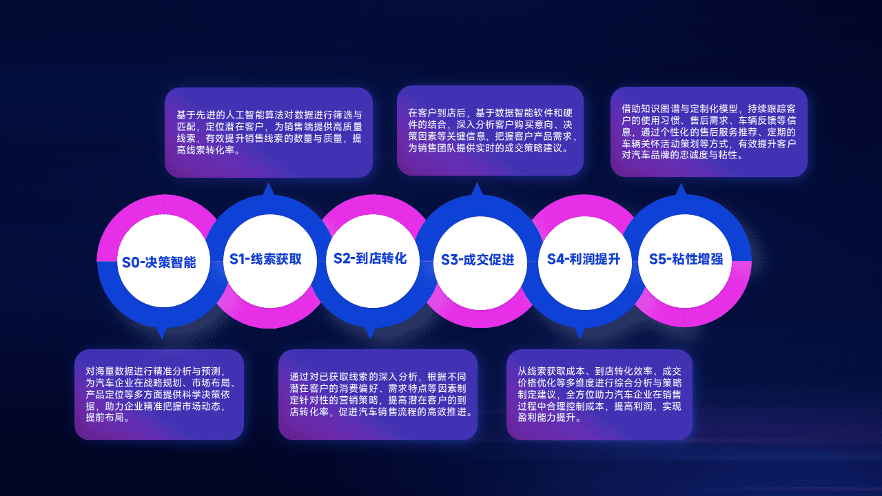 通过拓宽潜在客户来源、、优化线索分配并提高到店转化率,,,,以增强销售效率。。。同时,,,利用线索数据不断优化分析模型,,,有效提升转化率,,扩大营销影响力。。。